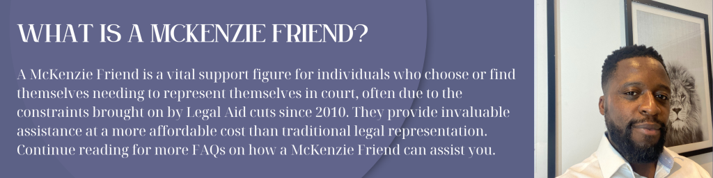Look no further than McKenzie Friend London. I am committed to offering experienced, reliable, and professional support to guide you through your legal challenges.
